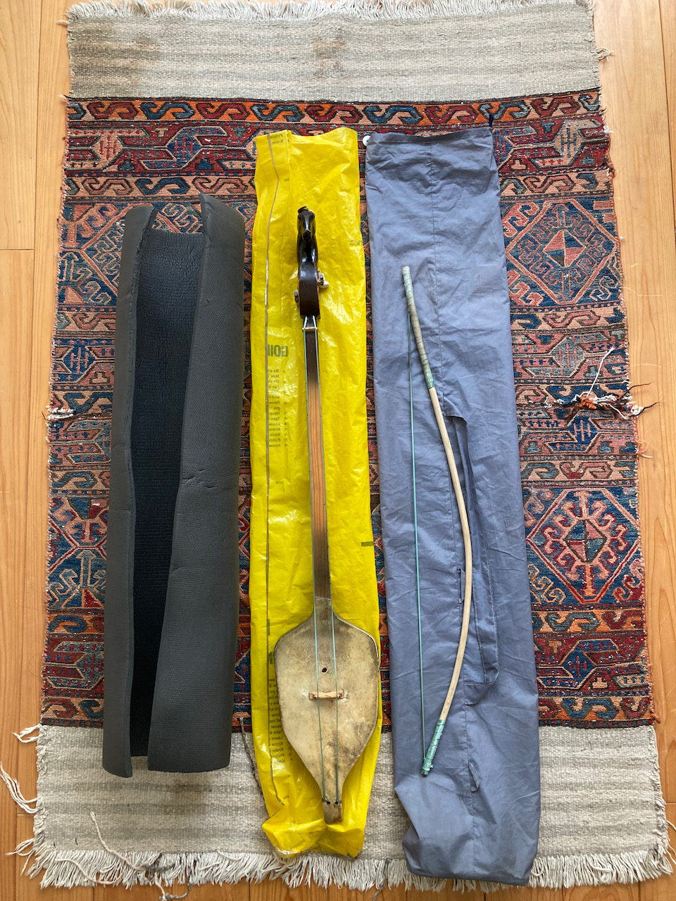 馬頭琴ケースは、図らずや一つ二役の納得の機能美となった。お遍路時にもバックパックの脇に馬頭琴を挟んで四国一周歩いたのだが、その時は、使わなくなったゴアテックスのビビィバックを解体して、縫い物上手の友人に馬頭琴専用の防水バックを作ってもらったものを担いでいた。今回は、そこに思わぬことからアップグレードがなされた。それは、こんな経緯だ。