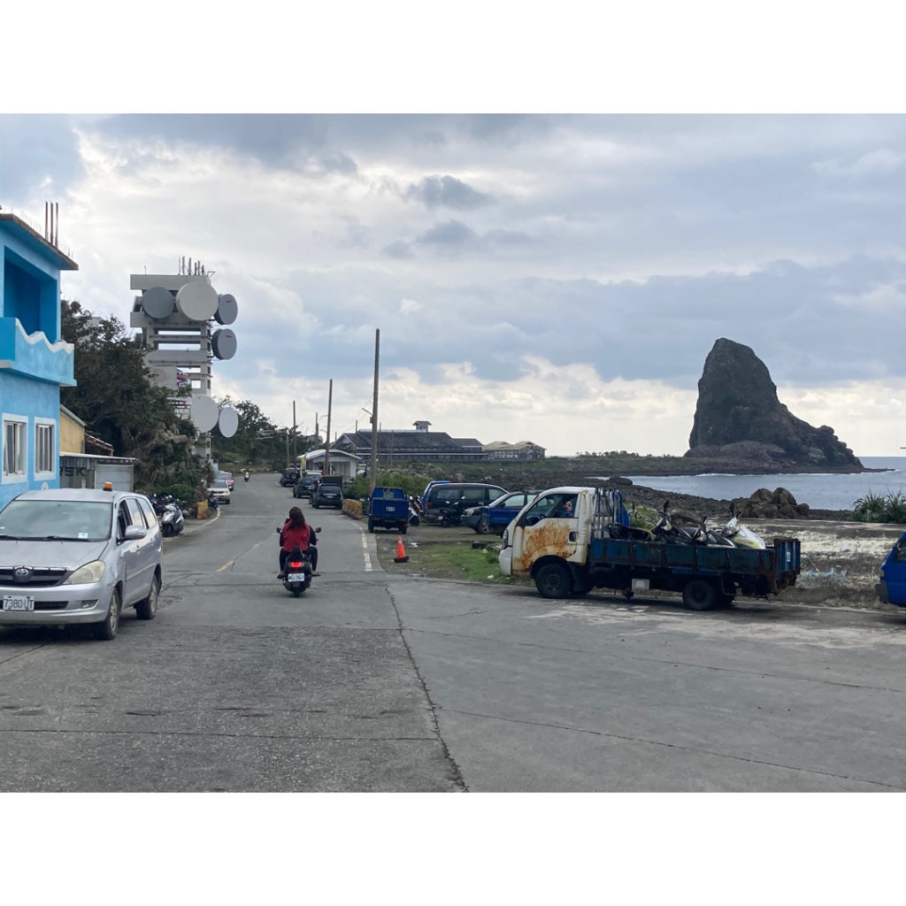 道には野良ヤギたくさん、噂通りだ。ヤギをみながら、畑(芋なのかな?おおきな葉っぱの作物がたくさん畑にあるぞ)を両脇に、道を歩いていると、荷物をたくさん載せたり、二人三人四人!?乗りの原付がビュンビュン脇を走り去っていく(港から、各々の村に帰るのであろう)。たまに、ぼくの横でわざわざ停まって何やら話しかけてくる、おじさん、おじいちゃんたちがいる。中国語でよくわからないけど、「お前、歩いているけど、どこに行くんだ?この先まで、俺の後ろに載せて行ってやるぞ、さあ、乗れ。雨も降ってるぞ」と、雨のなか、何もない所を歩いている僕を心配して声をかけてくれているのかな? と察する。もしそうなら、ヒッチハイクしなくても、向こうから声かけてくれるなんて、すごいところ。そんな親切心にも、「歩きたいんです。歩いて島一周したいんです」と身振り手振りで答えると、「そうか、えらいな」といった感じのびっくりした様子を残して、また走り去っていく。