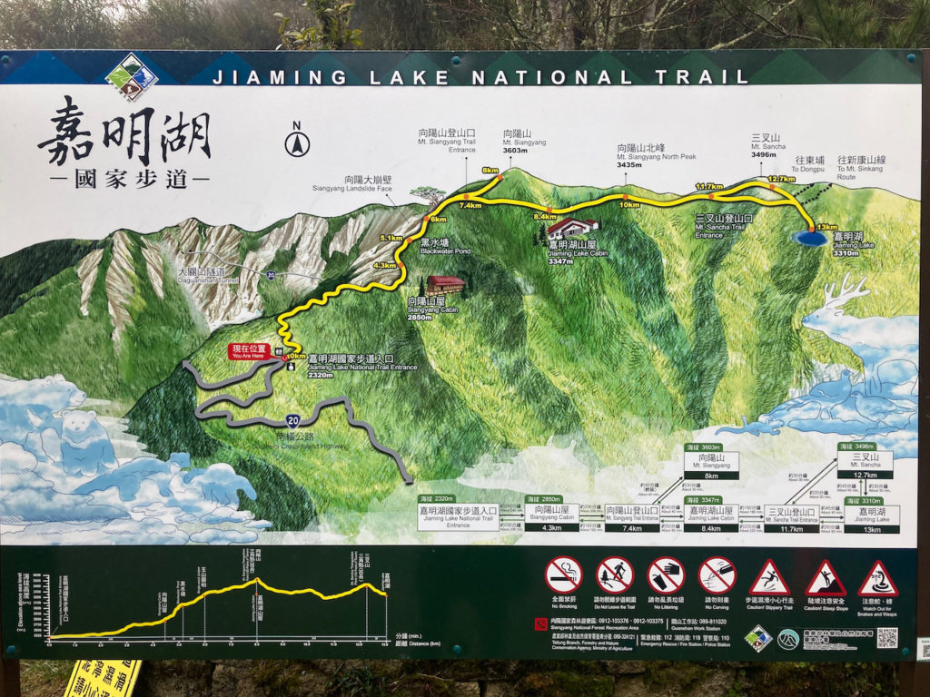 そんなやりとりを数台の軽トラとした後に、今度はセダンが止まってくれた。中を覗き込むと、若い台湾人の男子三人組だ。彼らの車と身なりに、村人ではなく、他所からの観光者のようす。「この先の嘉明湖の登山ルートの入り口まで行きたいのだけど」と英語で話しかけると、「ああ、オッケー、オッケー」と言った感じで、後部座席のドアを開けてくれた。中に乗り込んでお話をすると、彼らは大都市・高雄からの若者で、僕と同じくに今日から嘉明湖へ登山に行くらしい。しかし、その情報を得たあとには、たいして会話も弾まず・失笑。ヒッチハイクした身としては気まずいなと思いながらも、彼らの沈黙を尊重し、ぼくも無理に話しかけず、窓の外の景色を遠慮なく楽しむ。