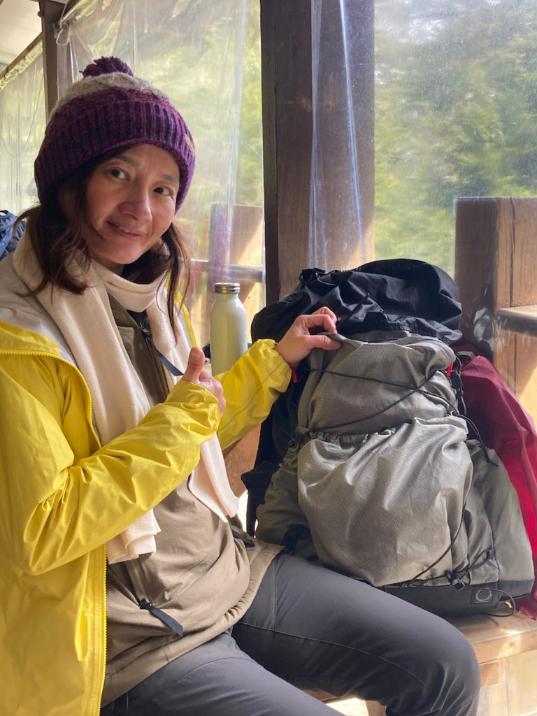 すると、「あ、これ『山と道』ね!」との声に振り返ると、ぼくのバックパックを指差している女性の姿。「わたしもよ!」と言って、彼女のバックパックに、他のギアも見せてくれた。「一緒にお茶どうぞ」と言って、彼女と彼女の仲間達の輪に混ぜてもらう。ぼくは、「『山と道』を持っているだけで、お友達ができるなんて」と、『山と道』に感謝の気持ち。