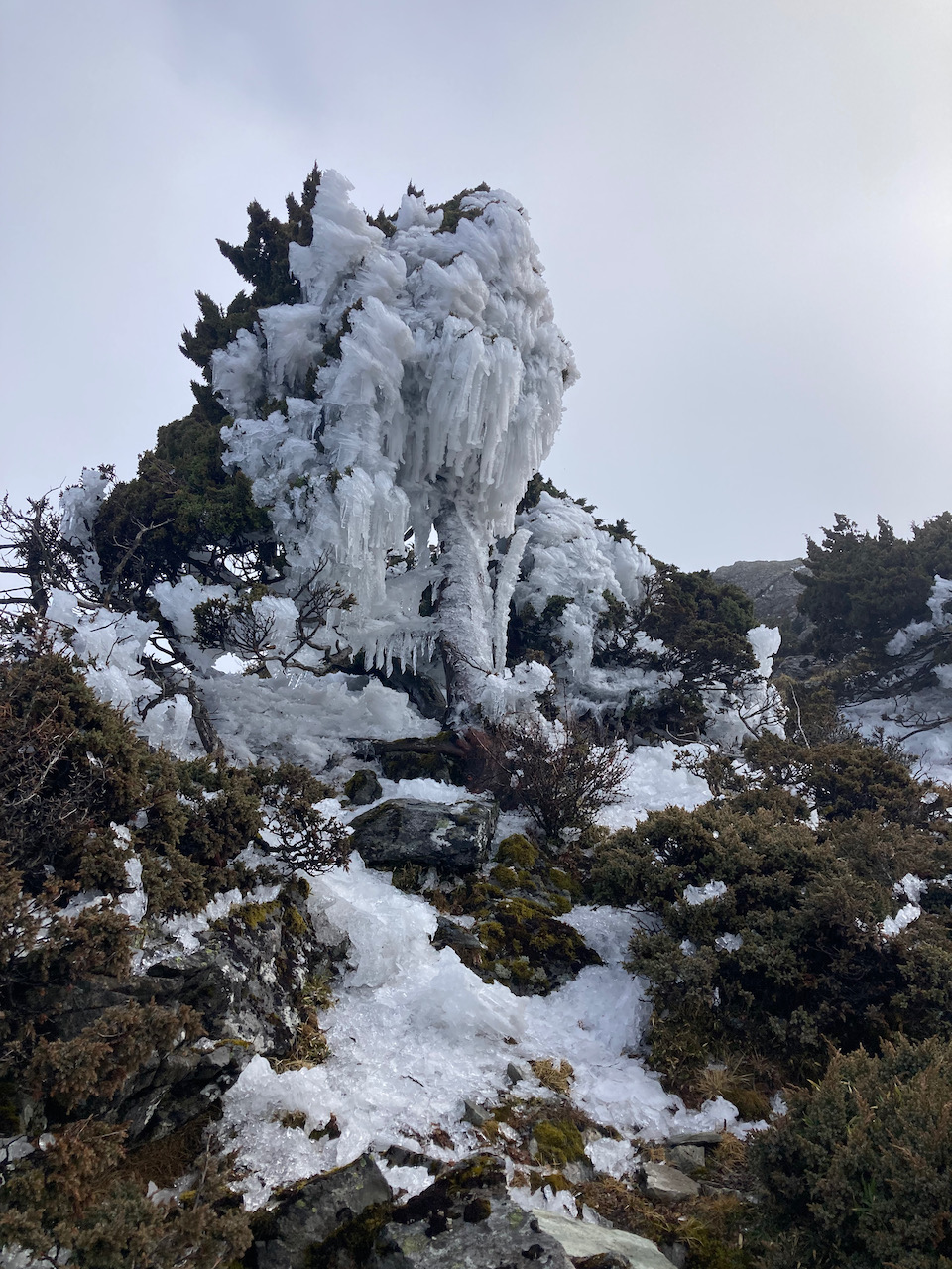 森林限界線を超えると、景色がガラリとかわり、凍てついた氷の景色。
