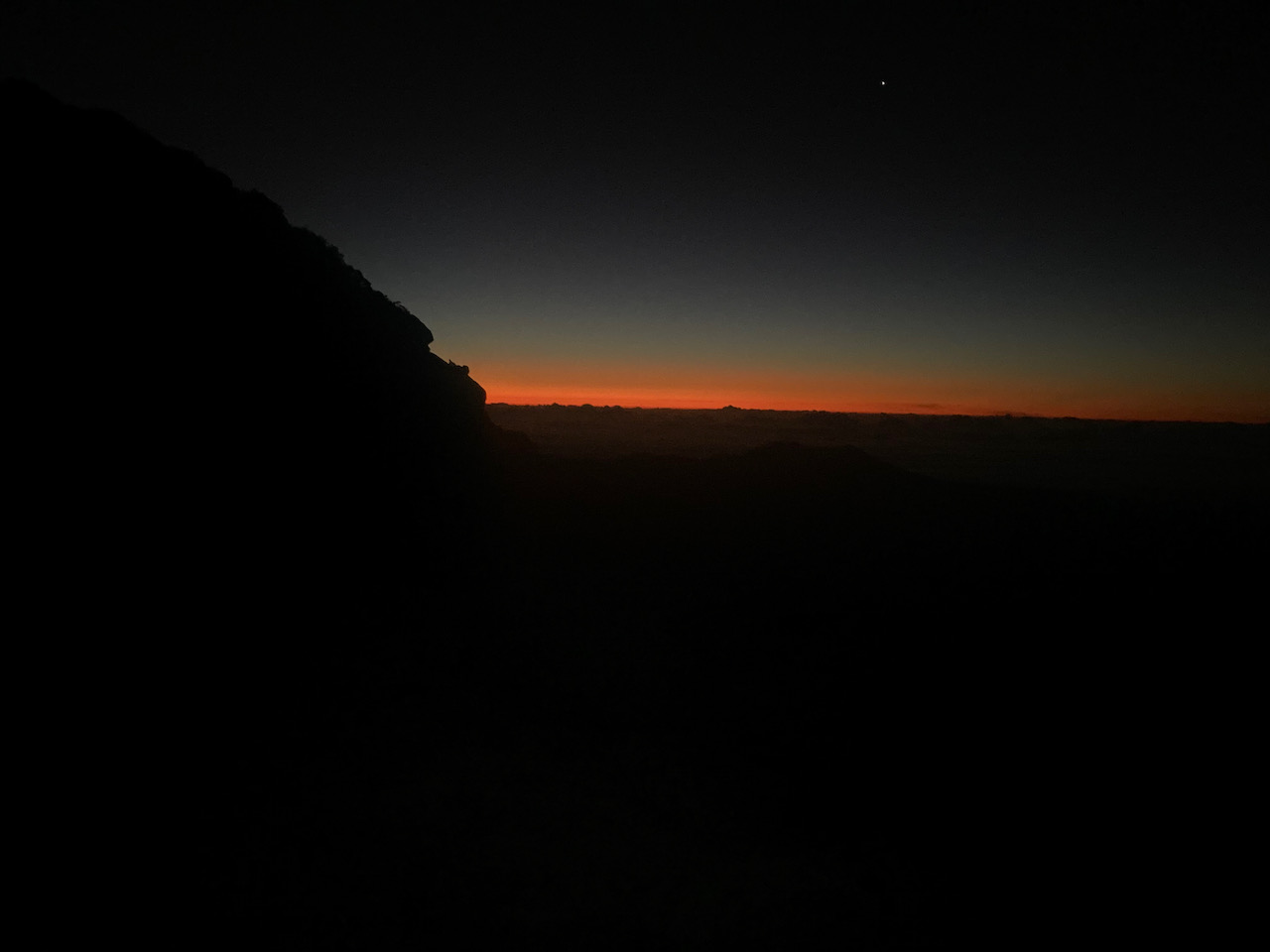 今朝は、下山途中の違う山の山頂からのご来光を目指す。