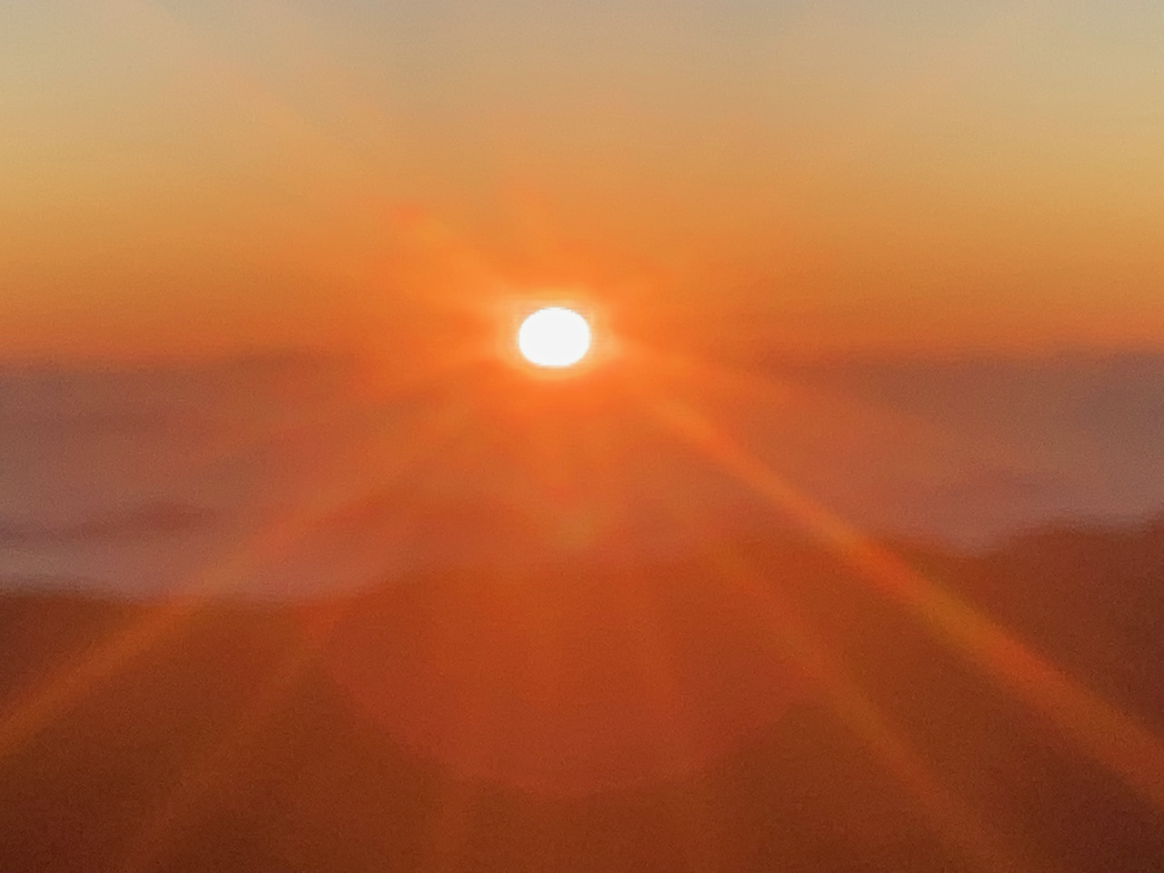 しばらくしたら、女の子二人組も到着。彼女たちも、ご来光に間に合った、というかちょうどのタイミング。二人とも、朝日に負けじとキラキラとよい顔をしている。人々が自然と対峙した時の無垢な姿に出会えることも、心の滋養になる。